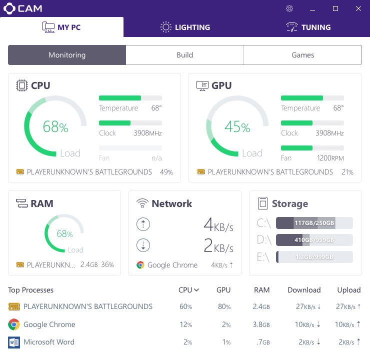 On a seperate path was the Windows App, an electron app that is essentially the control center for the computer you buy that they sell. We thought it was important that it was an app you came in and out of quickly, not a full destination. That's what vocal gamers like, they're sensitive to bloat and the aim was to make an app that was a utility and not a destination. What you see here is an information dense experience with a light experience in-game. It shouldn't be too different from opening your phone to configure something