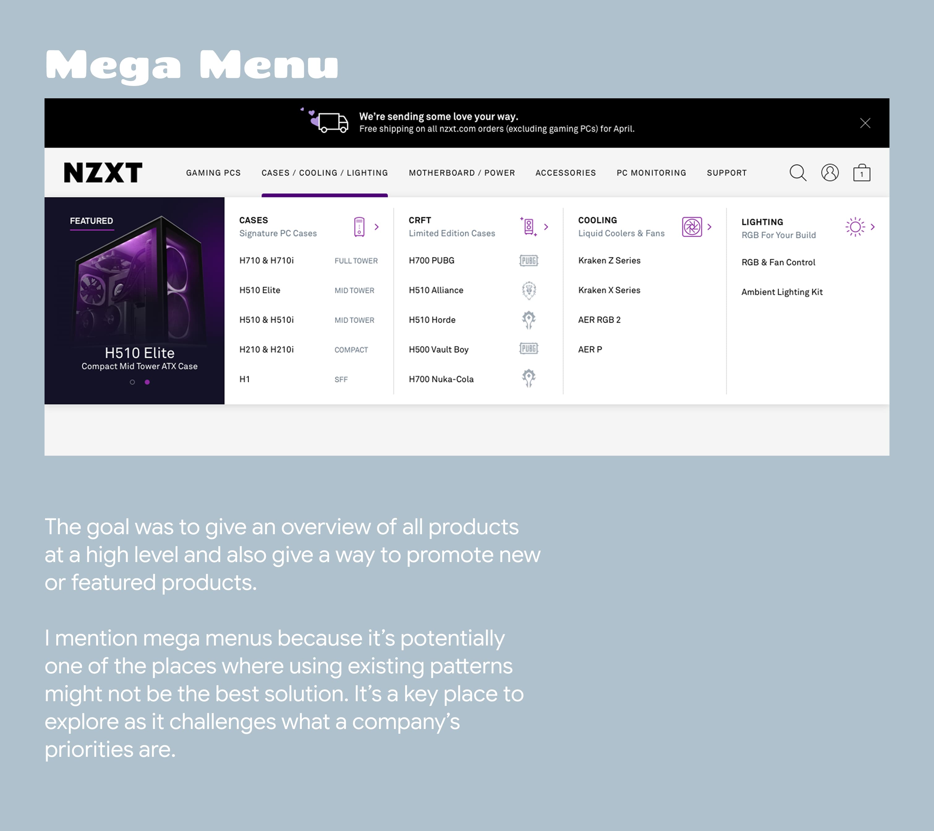 I did a wide variety of design work at NZXT but I'll focus on the major site redesign and app here.