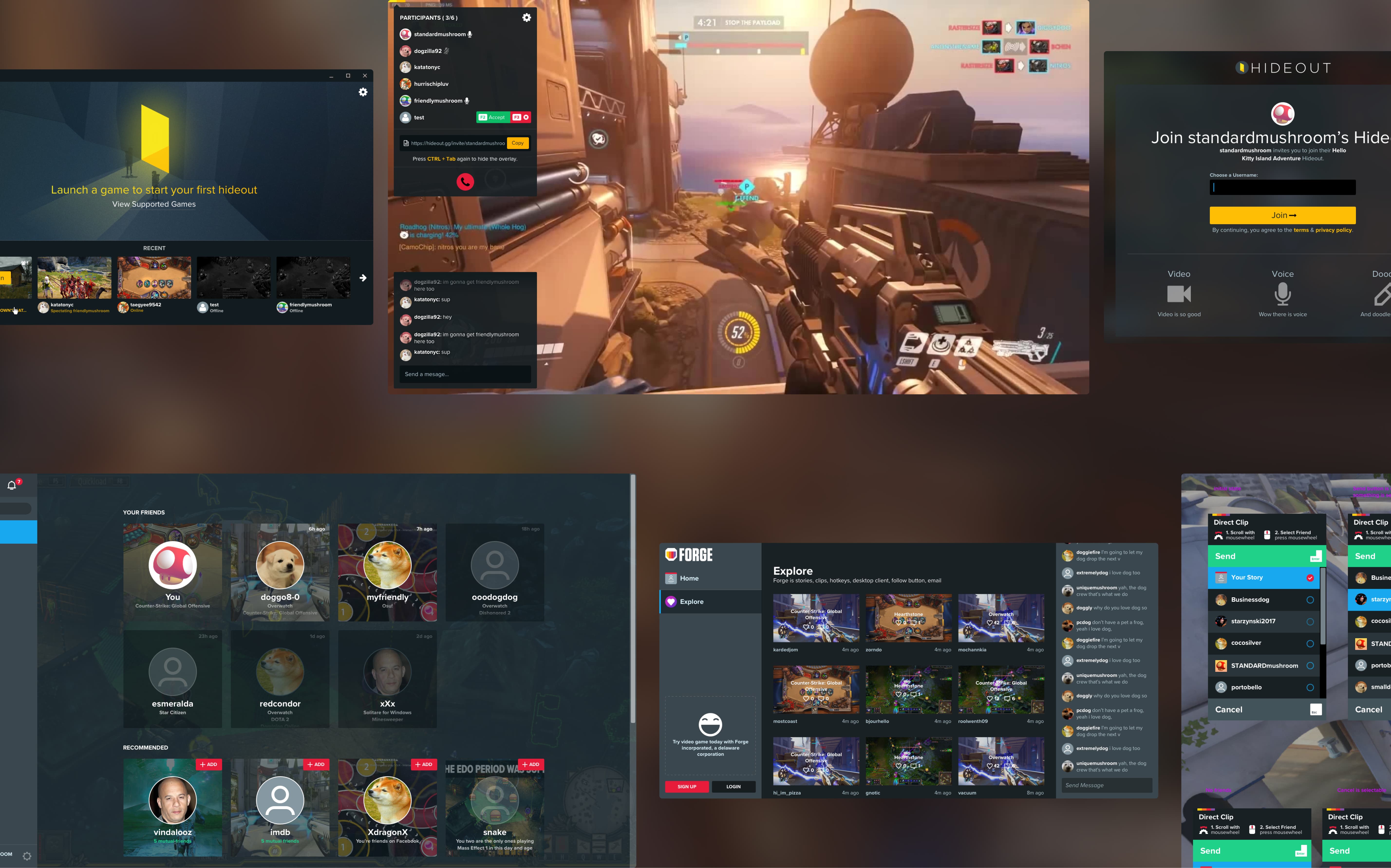 There were two main consumer facing parts: a social portion and the Windows app to capture gameplay and make gaming artifacts. These are some of the iterations and concepts for what the social experiece should be like. We designed and built for very different audiences for the concepts: the average gamer, streamers, stream viewers, and groups that play together.